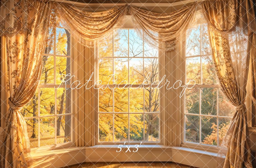 Enhance your photography with the Golden Autumn Window Drapery Backdrop, featuring warm golden tones and elegant draped curtains perfect for seasonal portraits. This backdrop creates a cozy and inviting atmosphere that beautifully captures the essence of autumn in any studio setting.