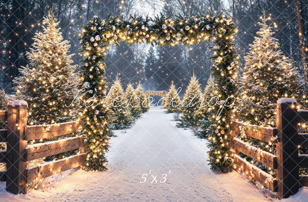 Create magical holiday portraits with the Winter Wonderland Festive Light Arch Backdrop. This enchanting scene features snow-covered fir trees and a beautifully lit garland arch, perfect for seasonal photography. Its warm lights and winter ambiance make it an ideal choice for festive photoshoots and holiday events.