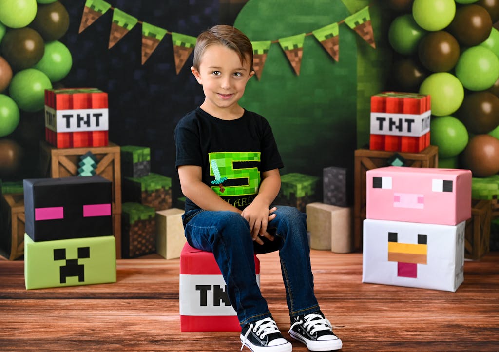 Verjaardagspel Geïnspireerd Jongens Groene Foto Achtergrond Designed by Mini MakeBelieve