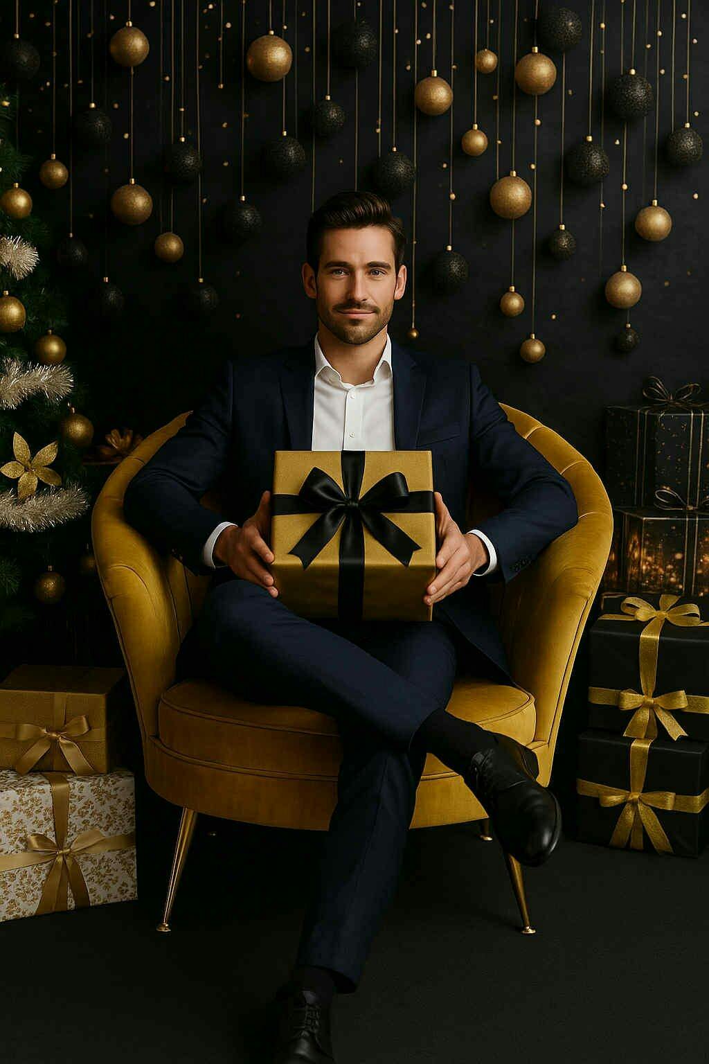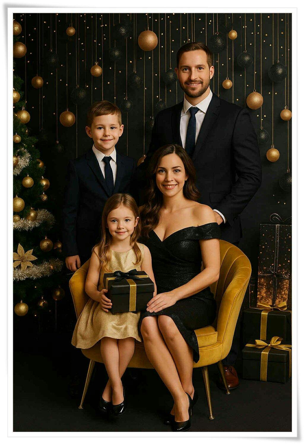 Kate Christmas Black Gold Ornaments Gift Boxes Backdrop Designed by Patty Roberts