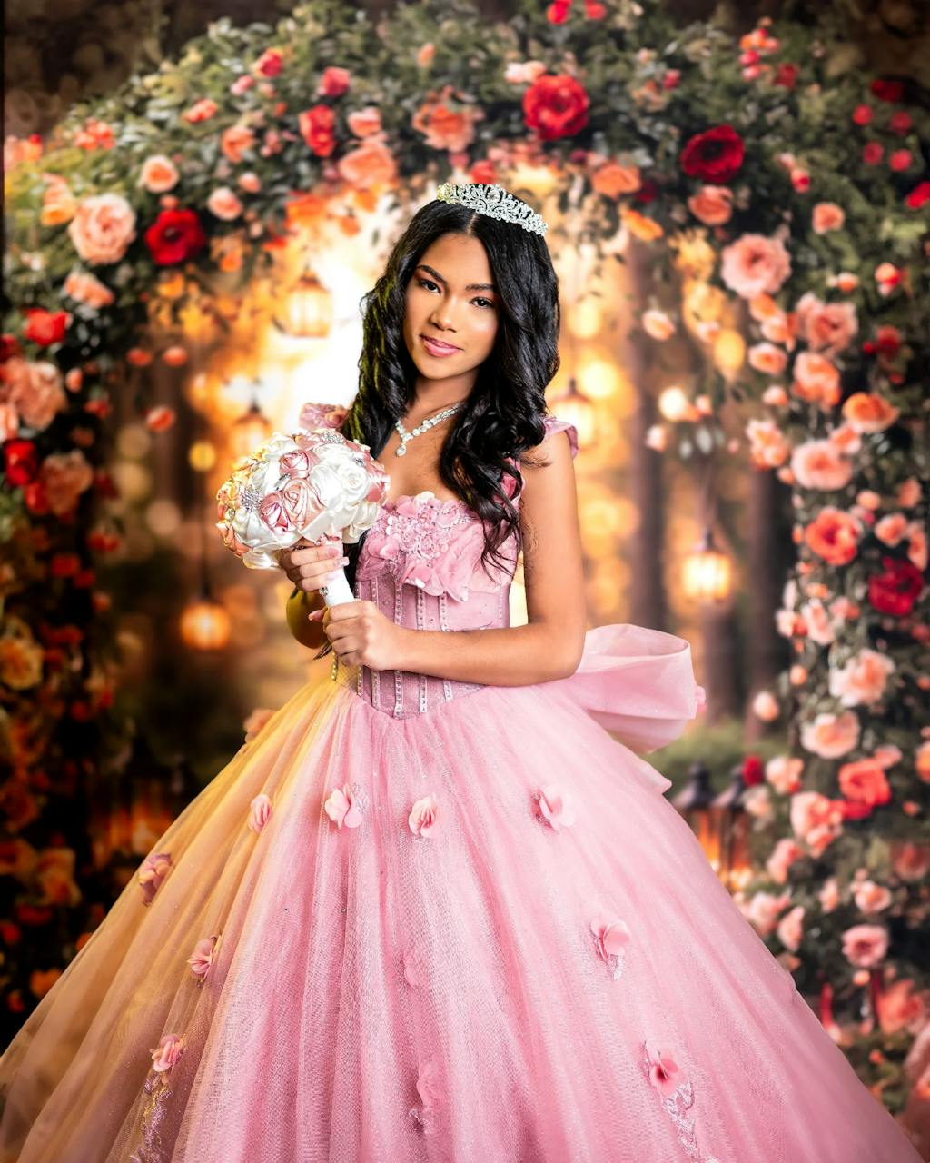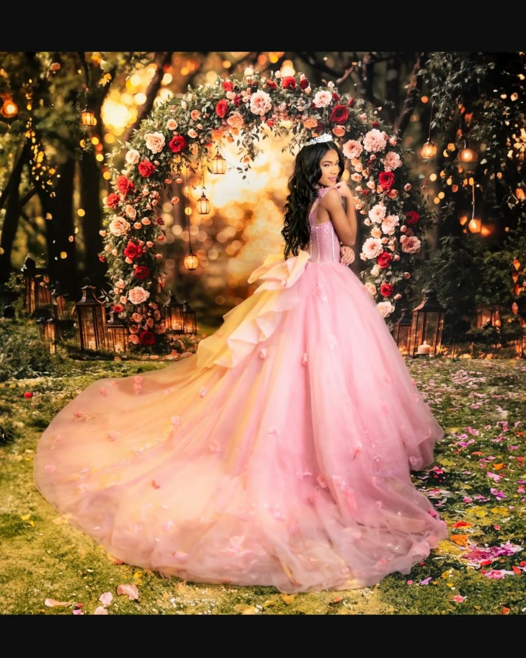 Valentine Flower Arch Lantern Foto Achtergrond+Spring Floral Pathway Grass Floor Foto Achtergrond Designed by