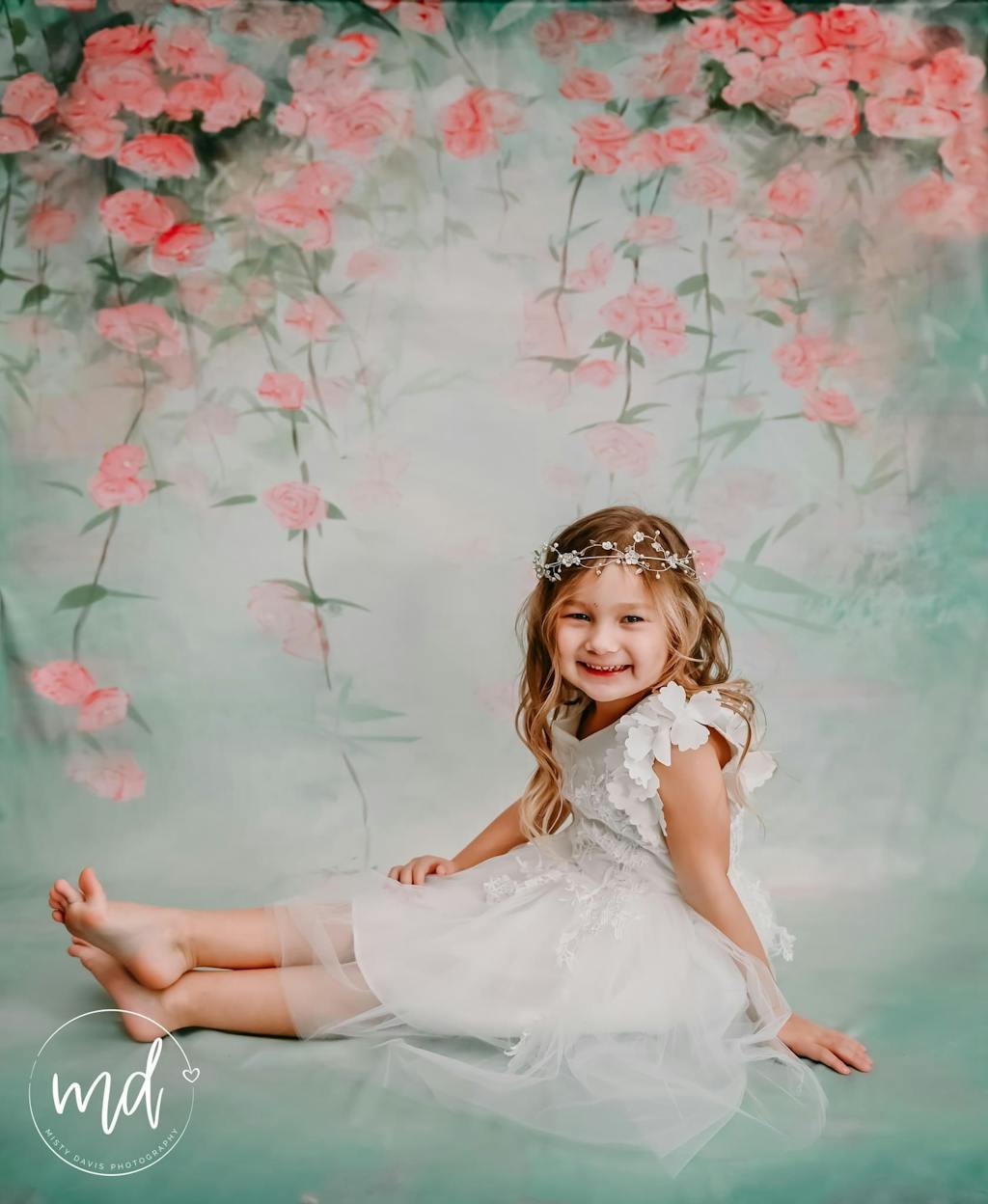 Elevate your photoshoots with the Delicate Hanging Pink Rose Backdrop, featuring soft pink roses gracefully cascading against a dreamy aqua background. This backdrop adds a whimsical, romantic touch perfect for capturing timeless portraits and special moments with an elegant floral aesthetic.