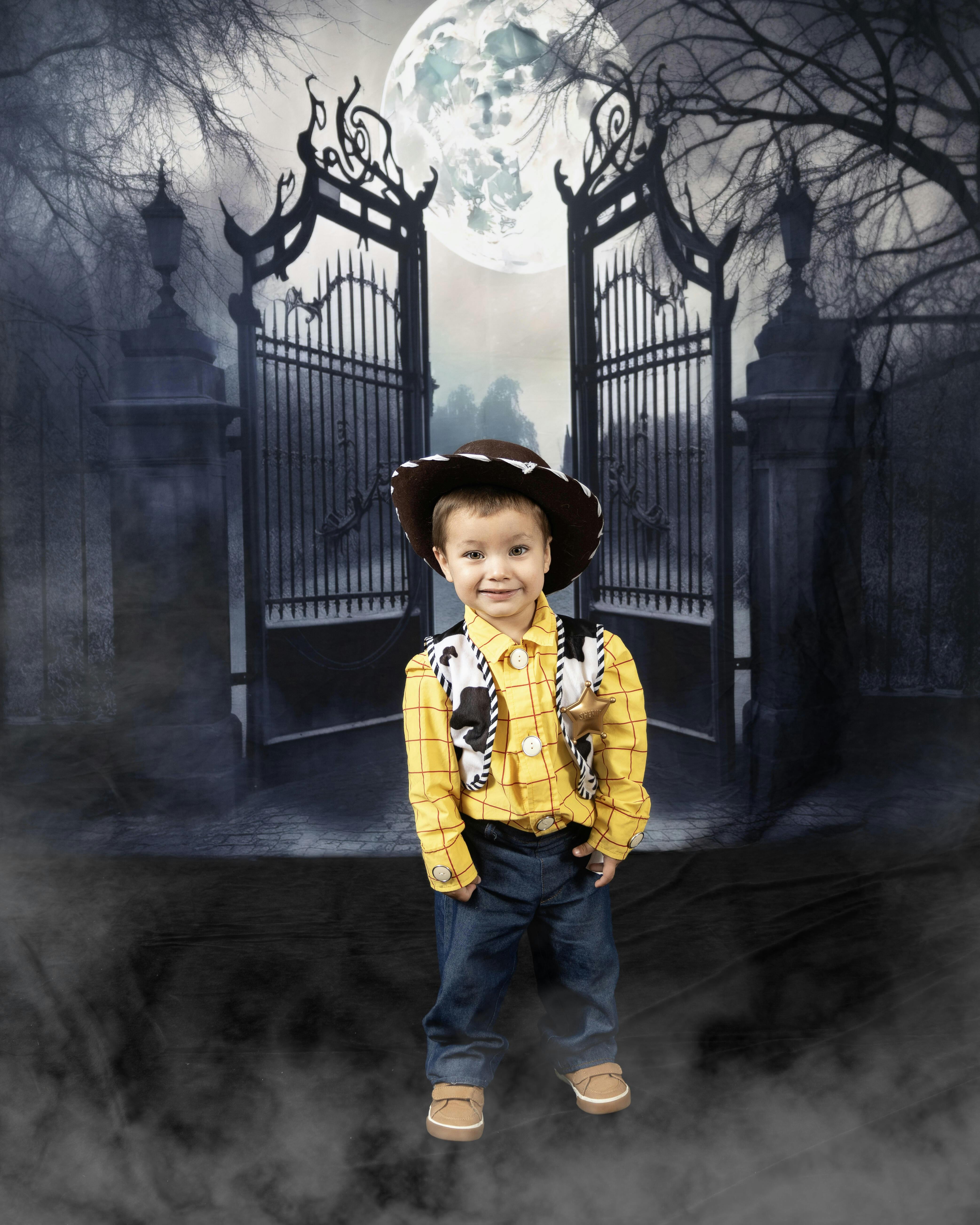 Create an enchanting and mysterious ambiance with the Mystical Moonlit Gothic Iron Gate Backdrop. Perfectly designed with eerie moonlight and intricate gothic gates, this backdrop brings a captivating and dramatic atmosphere to portrait sessions, making every photo uniquely memorable.