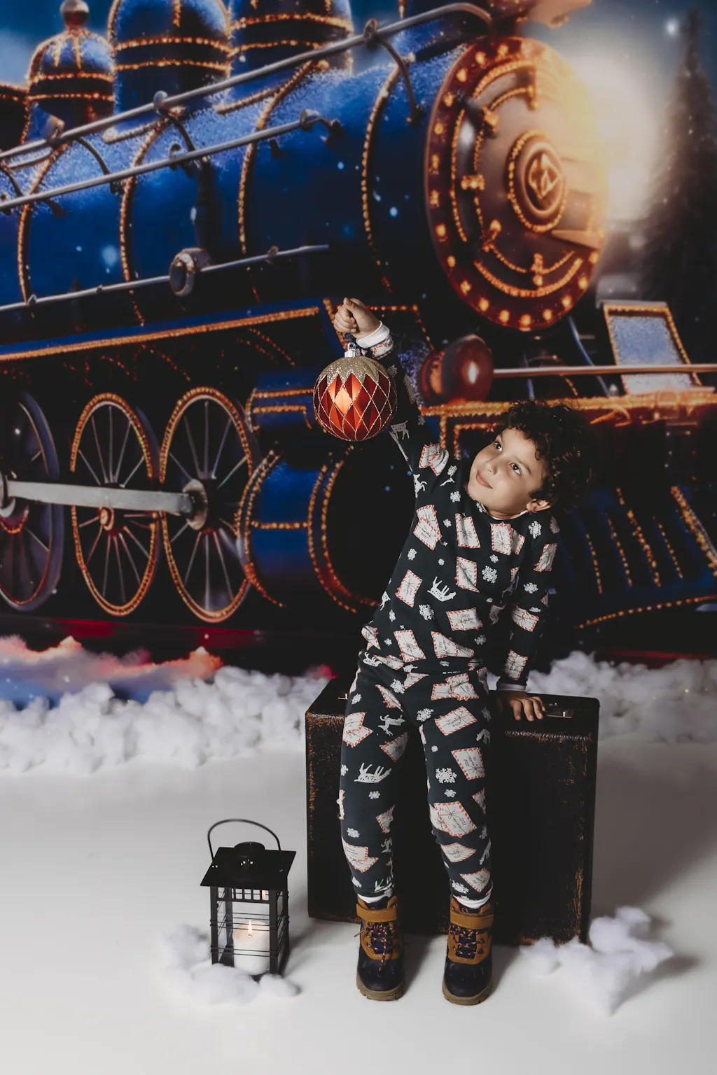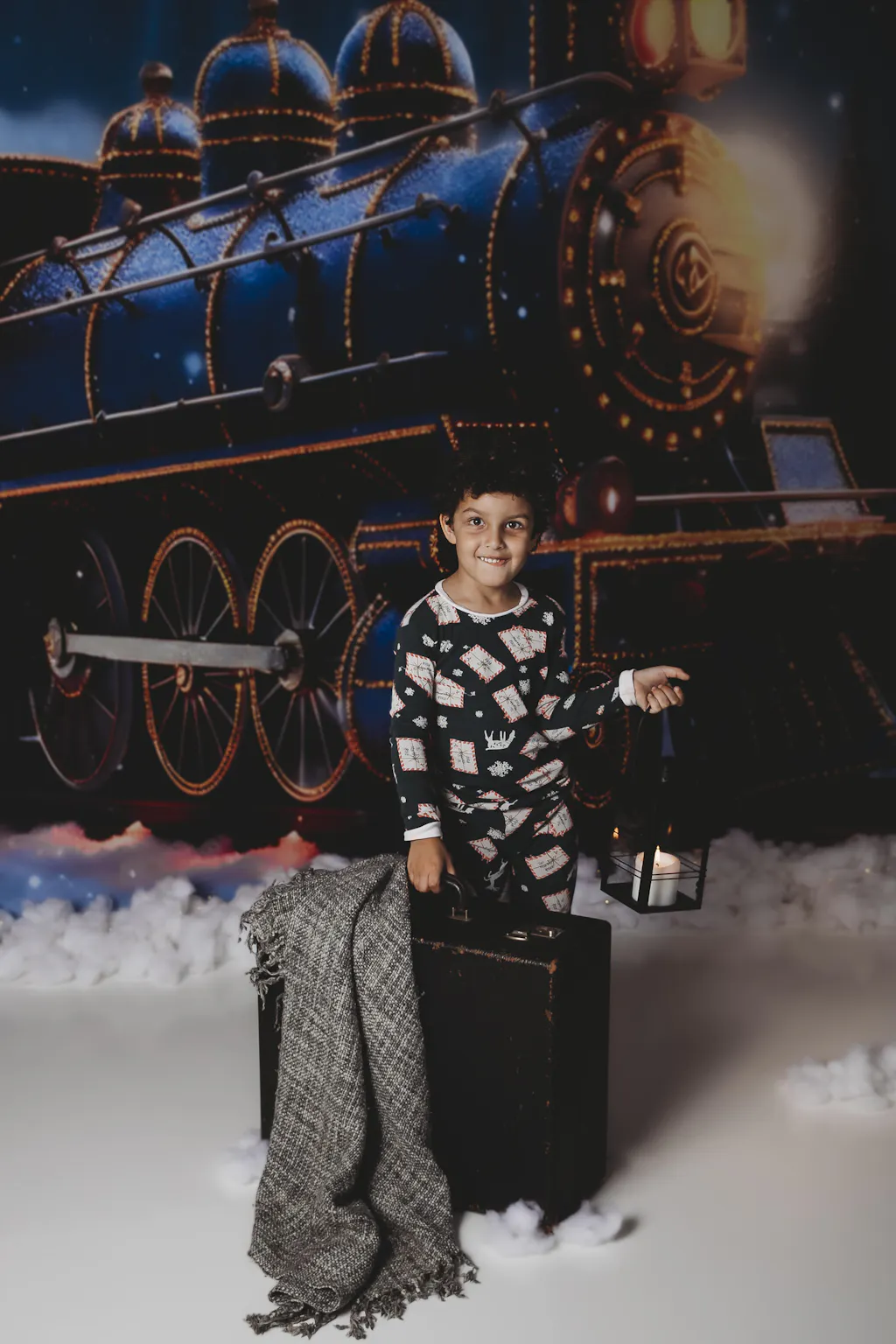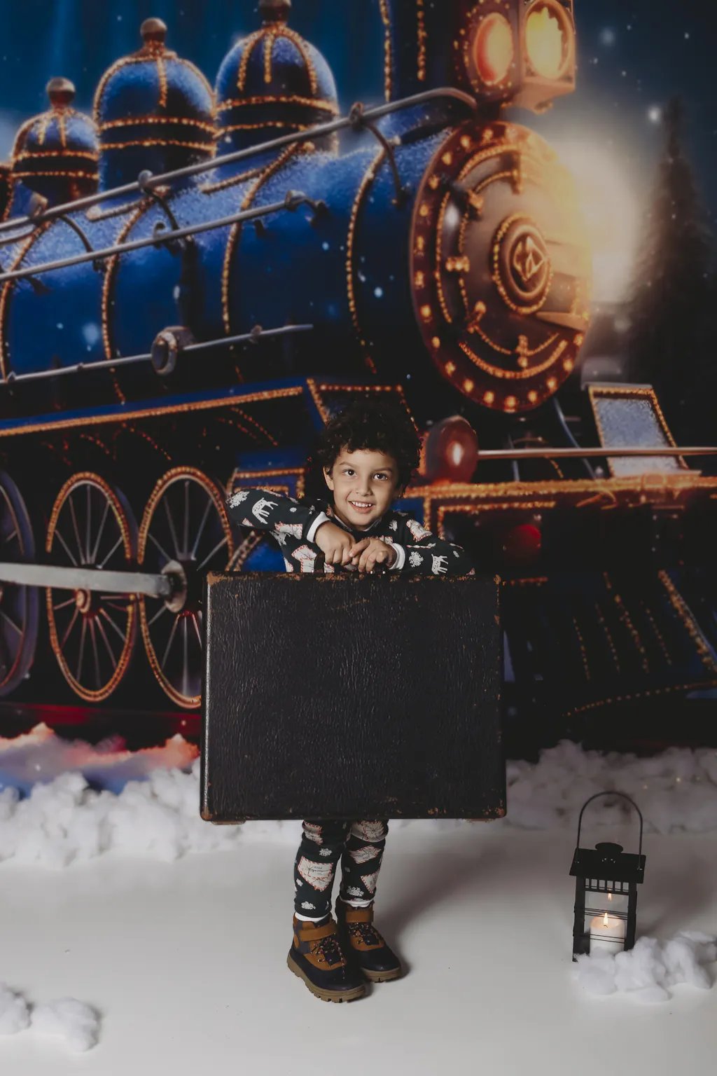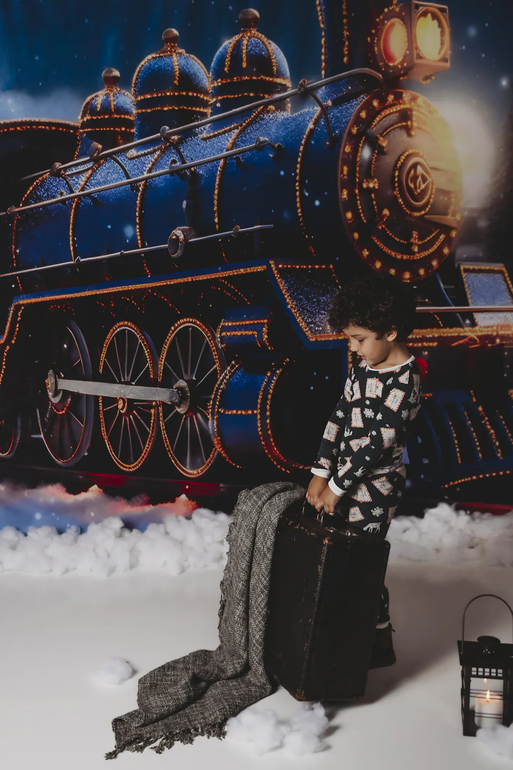 Kate Christmas Light Train in Snowy Night Printed Backdrop for Photography