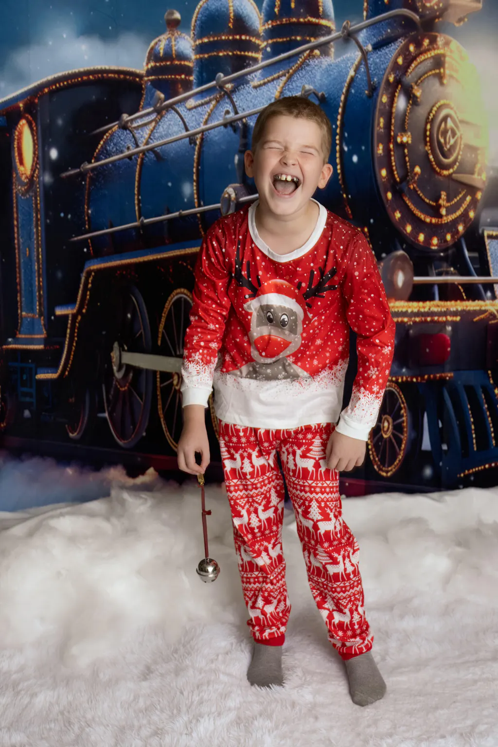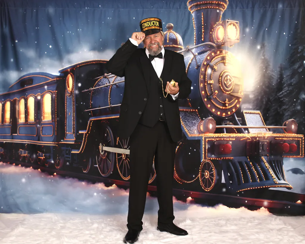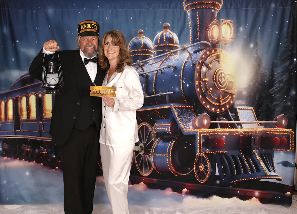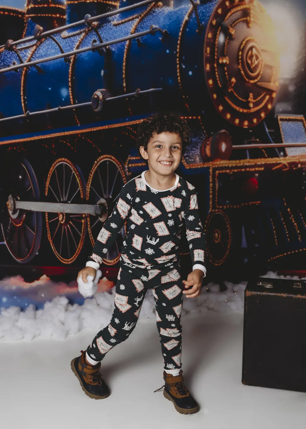 Kate Christmas Light Train in Snowy Night Printed Backdrop for Photography