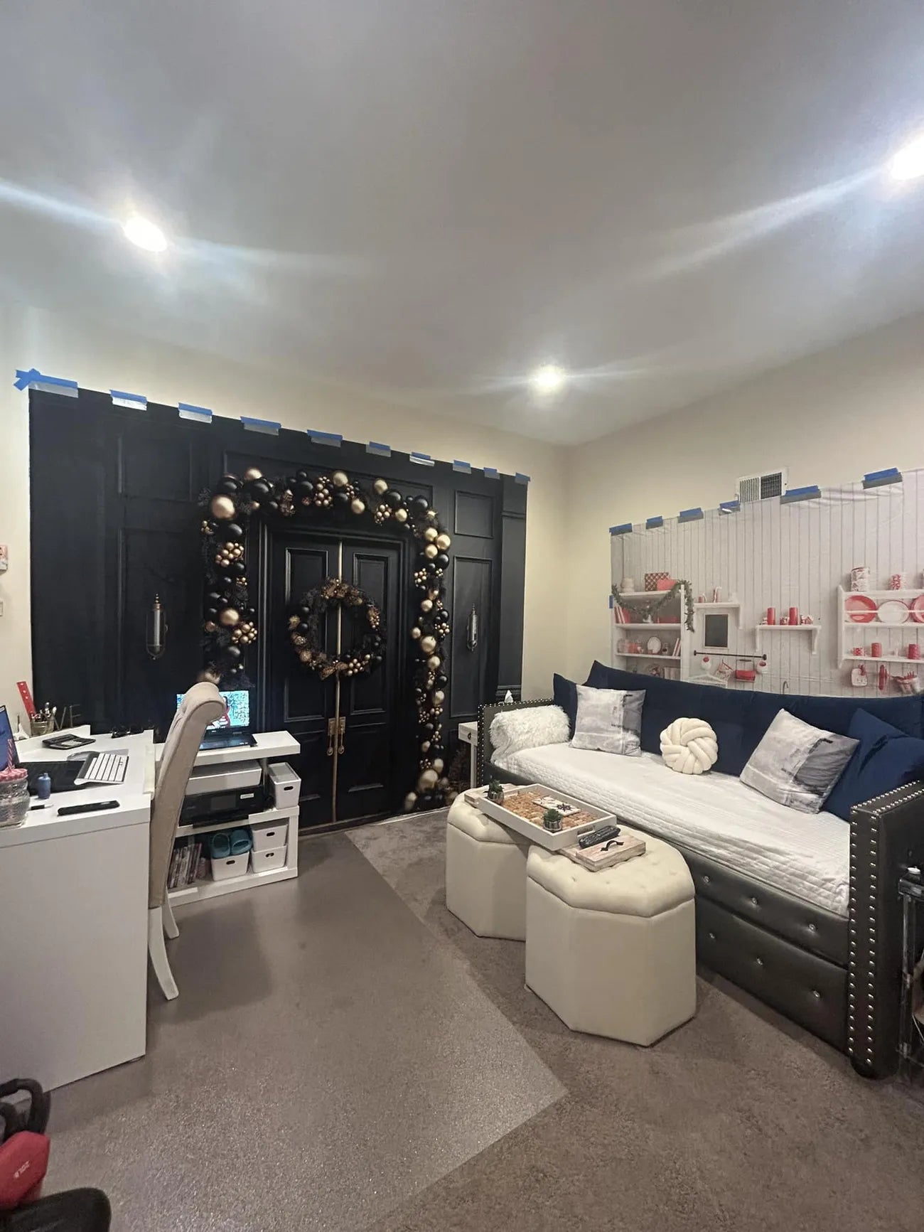 Kate Elegant Black and Gold Christmas Front Door Backdrop Designed by Mandy Ringe Photography