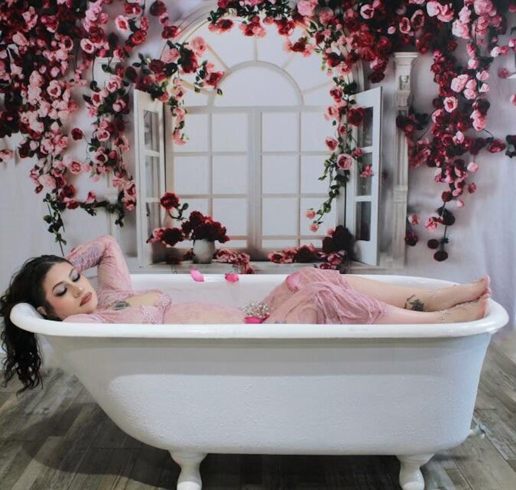 Transform your photoshoot with the enchanting Romantic Floral Cascading Window Backdrop. This backdrop features abundant pink and red flowers flowing around a vintage window frame, creating a dreamy, elegant atmosphere perfect for capturing timeless portraits and special moments.