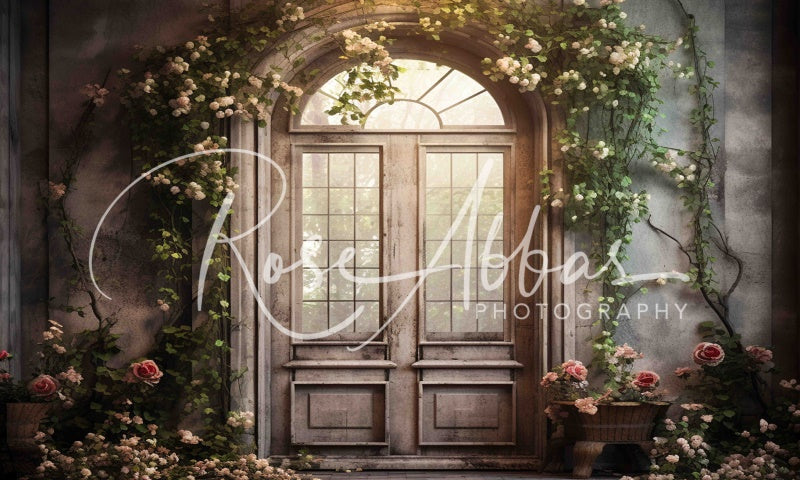 Elevate your photography with the Romantic Vintage Floral Garden Door Backdrop. This enchanting scene blends classic wooden doors with lush rose vines and soft natural light, creating an elegant, timeless setting perfect for portraits and special moments. Bring a touch of romance and vintage charm to your photo shoots.