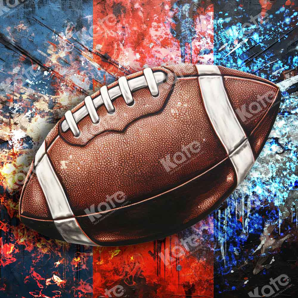 Elevate your sports photography with the Dynamic Football Sports Splash Backdrop. This vibrant, high-energy design features a detailed football set against an explosive red, blue, and white abstract background, perfect for capturing bold and exciting athletic portraits.