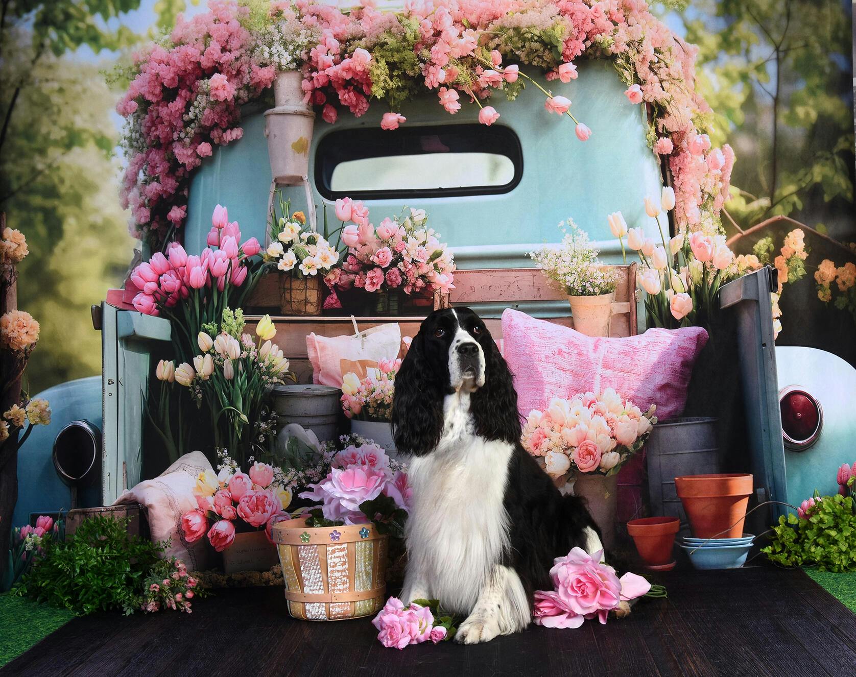 Kate Pet Spring Flower Truck Backdrop Designed by Emetselch