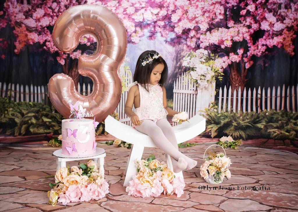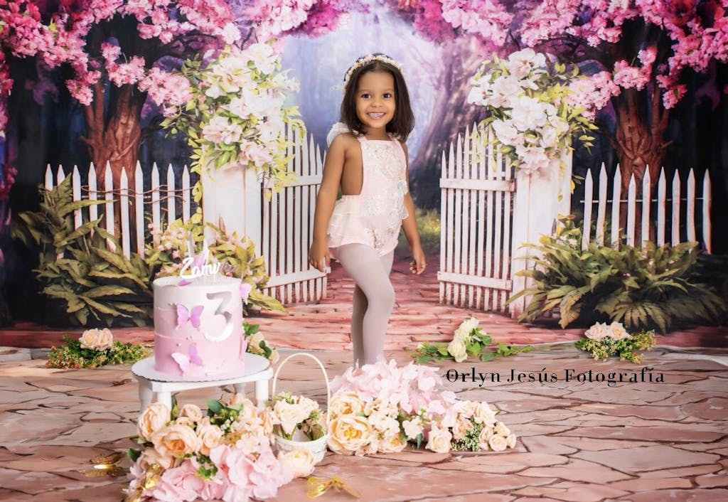 Create a magical atmosphere with the Enchanting Garden Cherry Blossom Gate, featuring vibrant pink blossoms and a rustic white picket gate. Perfect for spring-themed photoshoots, this backdrop brings natural beauty and elegance to any portrait session, enhancing every frame with floral charm.