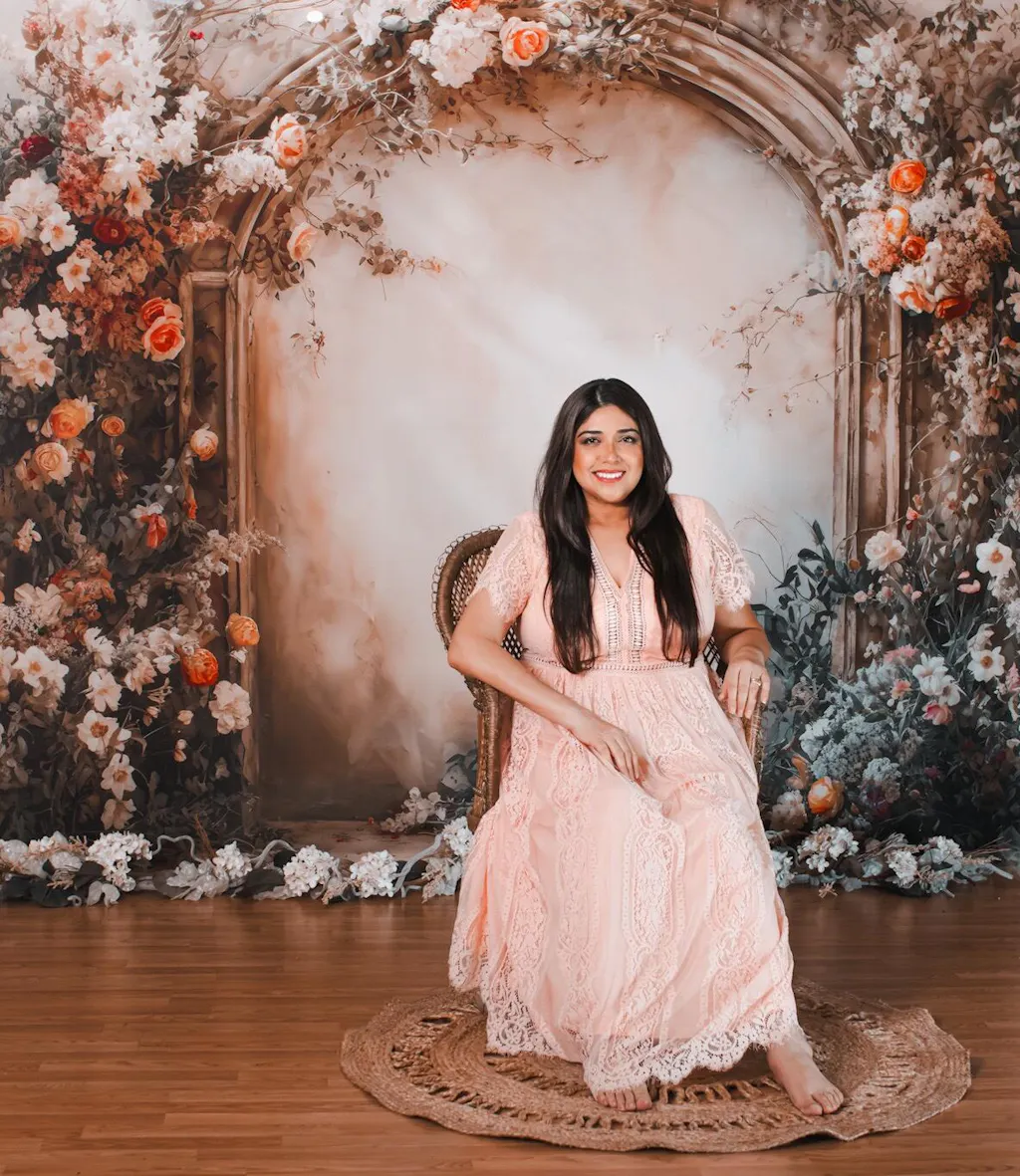 Kate Mother's Day Boho Vintage Beige Spring Flower Wall Printed Backdrop Designed by Emetselch