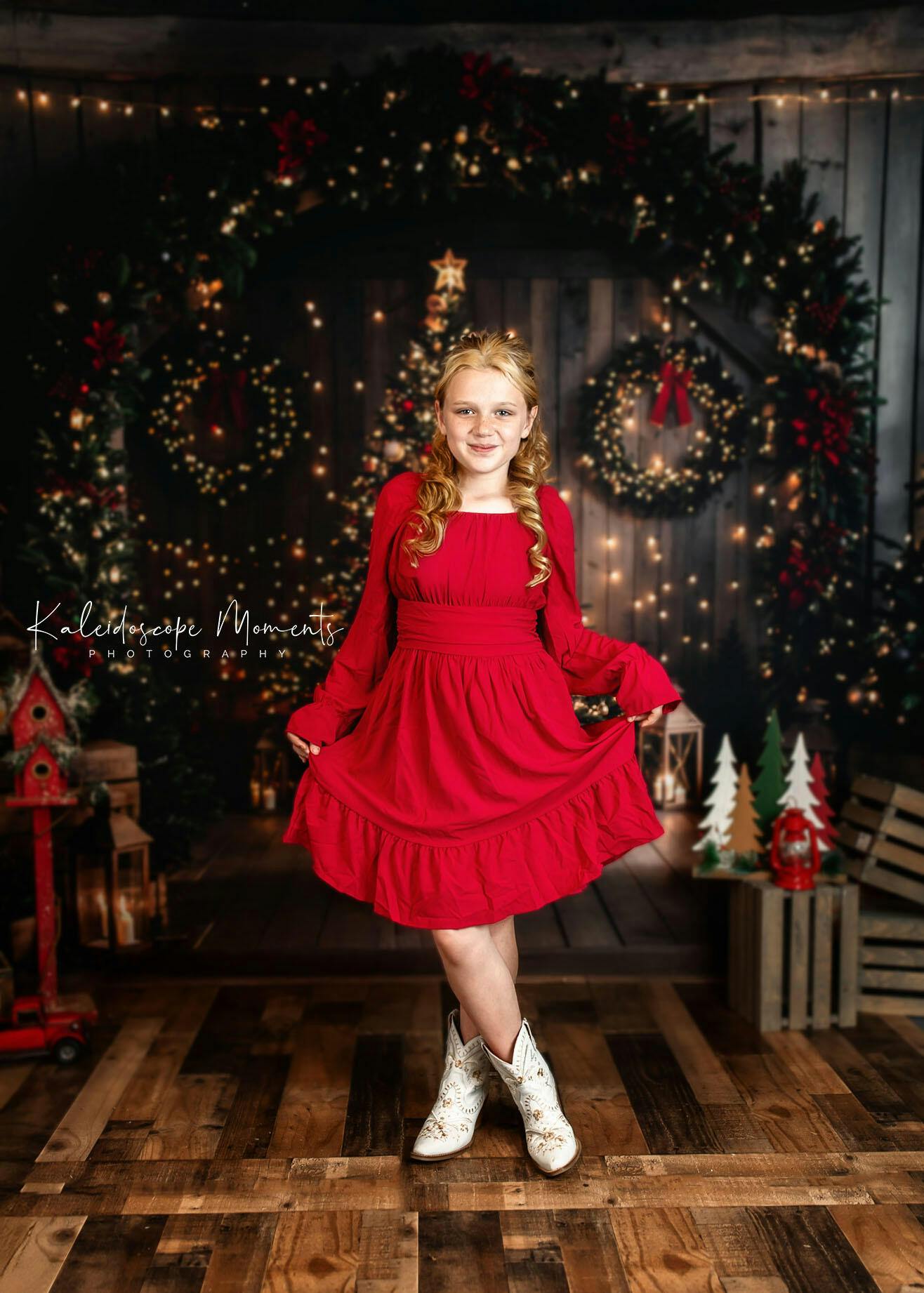 Kate Christmas Night Dark Brown Wooden Arched Barn Door Backdrop Designed by Chain Photography