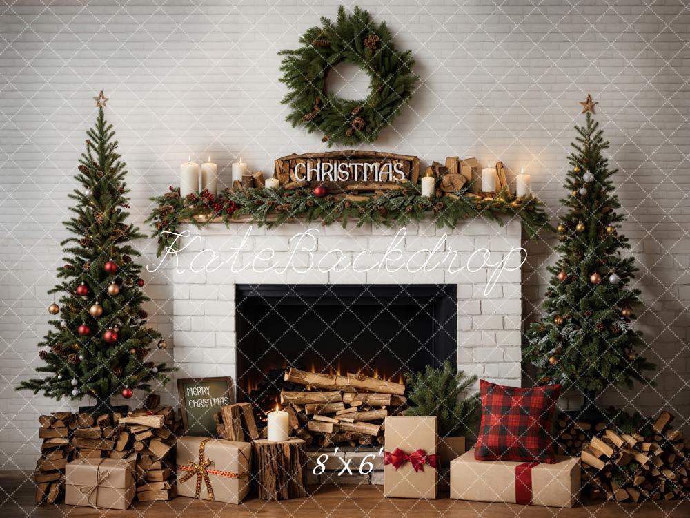 Kate Christmas Modern Cool White Brick Fireplace Backdrop Designed by Emetselch