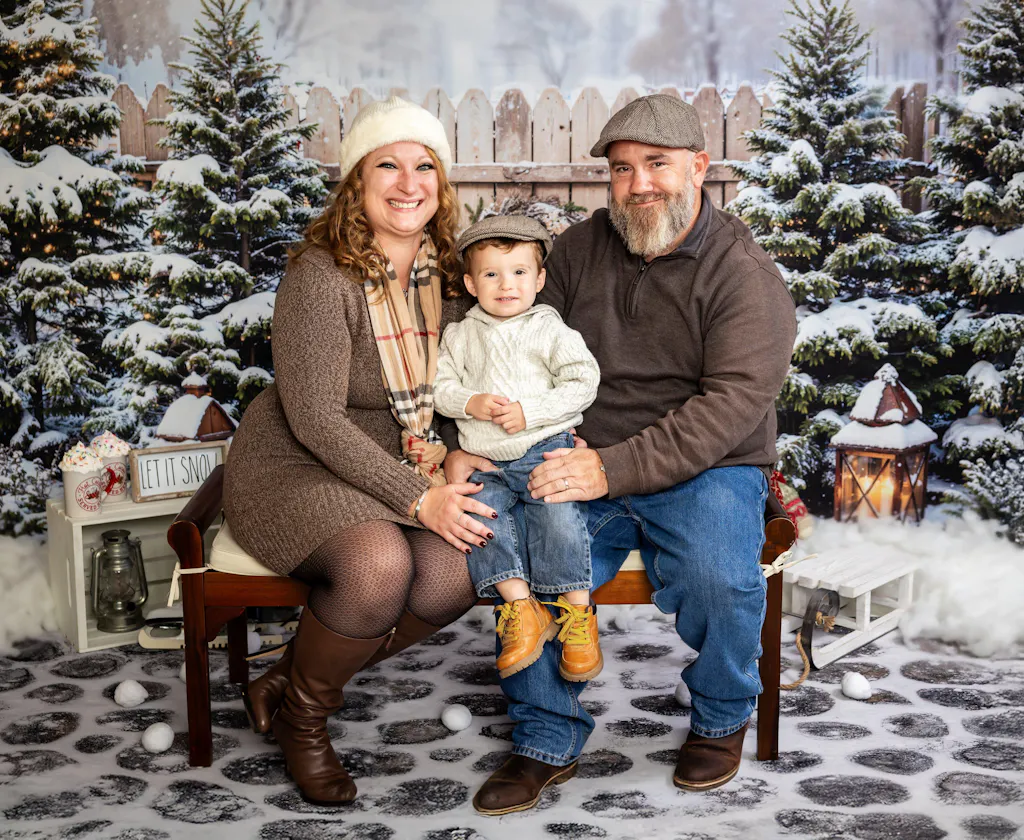 Kate Winter Outdoor Forest Christmas Tree Brown Wooden Fence Printed Backdrop Designed by Emetselch