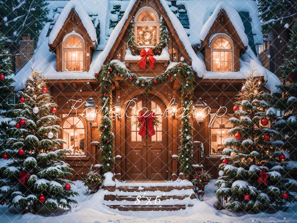 Kate Christmas Outdoor Forest Brown House Backdrop Designed by Emetselch