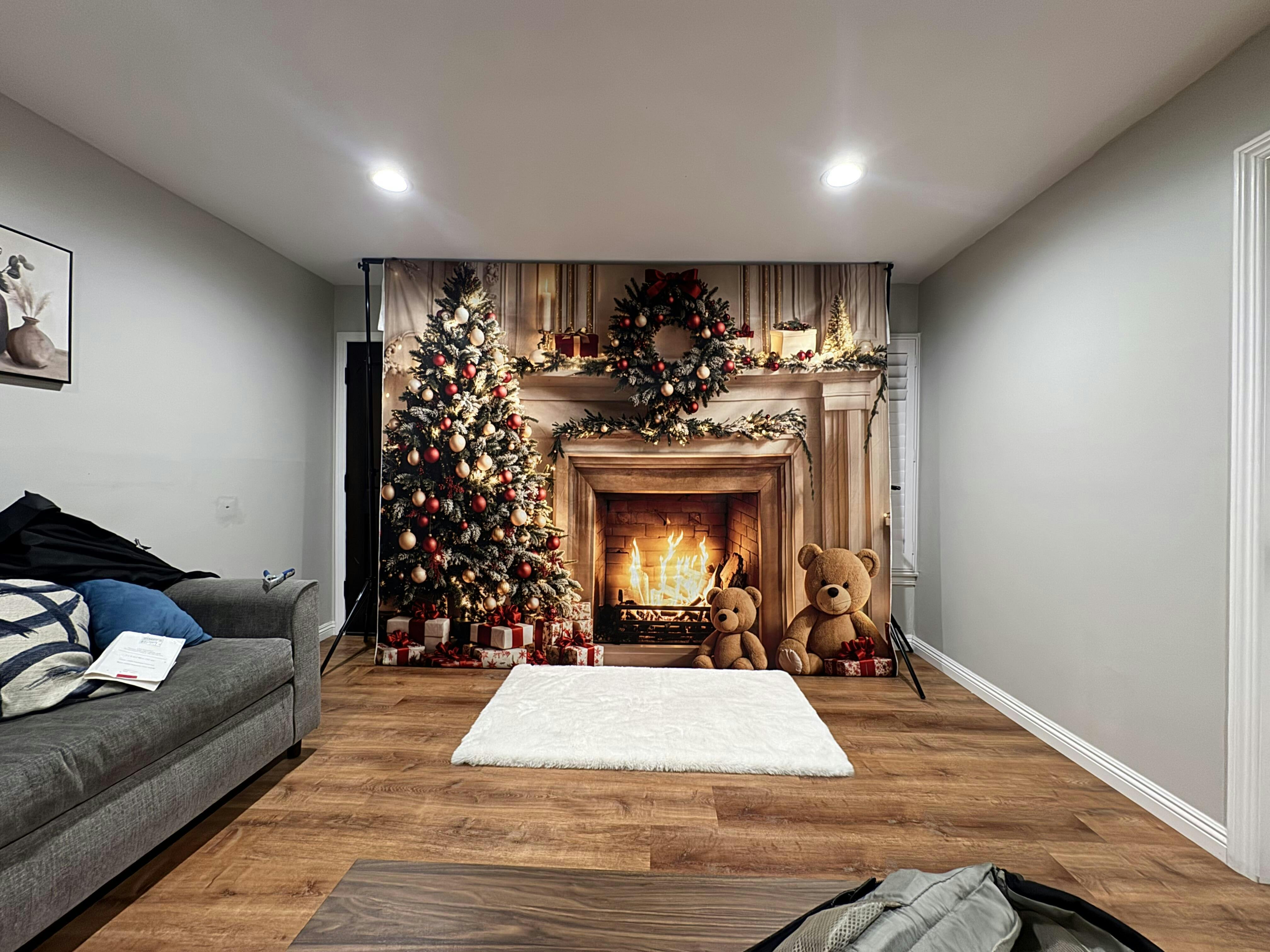 Kate Christmas Tree Fireplace White Retro Wall Backdrop Designed by Emetselch