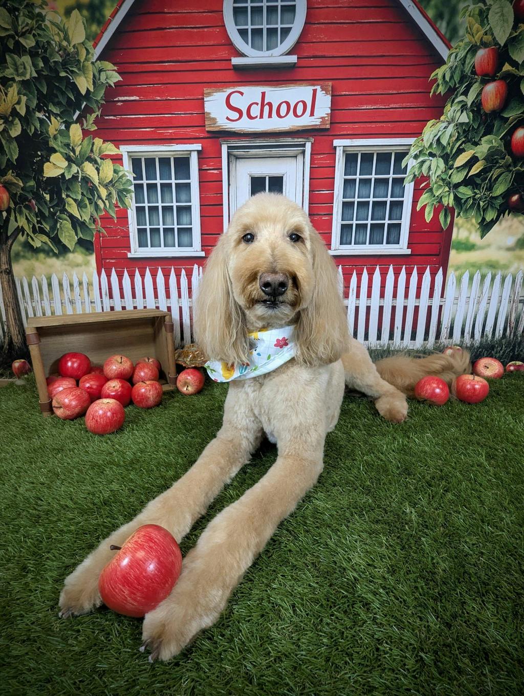 Kate Back to School Red Schoolhouse Apple Tree Fence Backdrop Designed by Emetselch