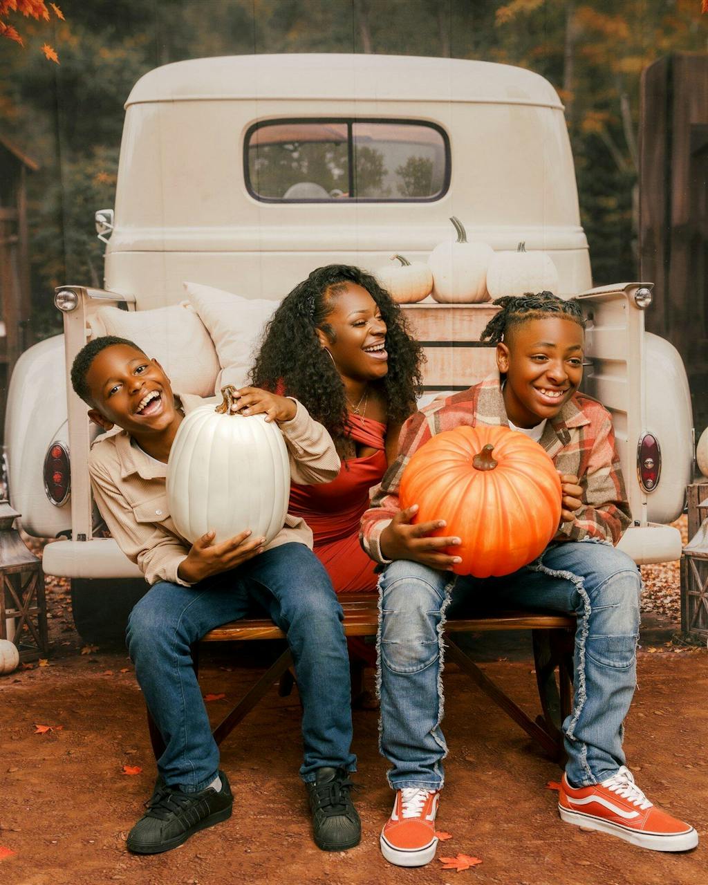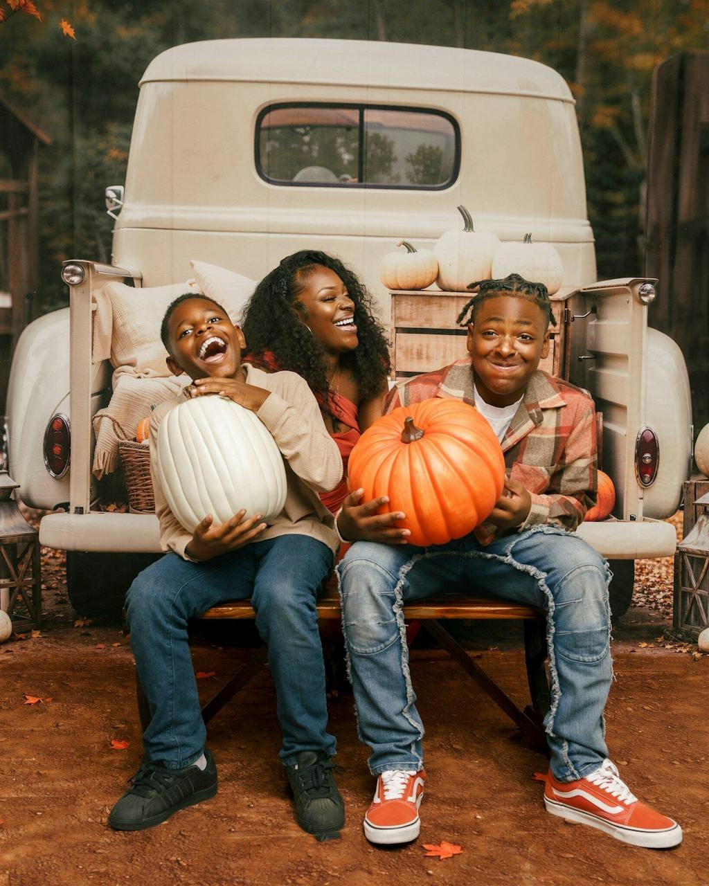 Kate Fall Truck Pumpkin Pillows Printed Backdrop Designed by Emetselch