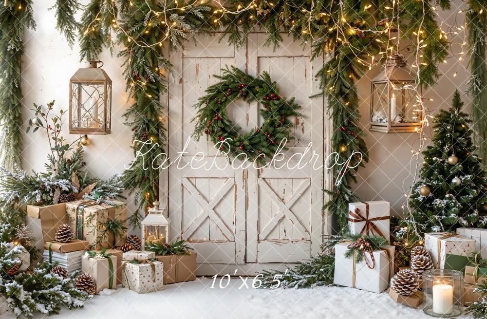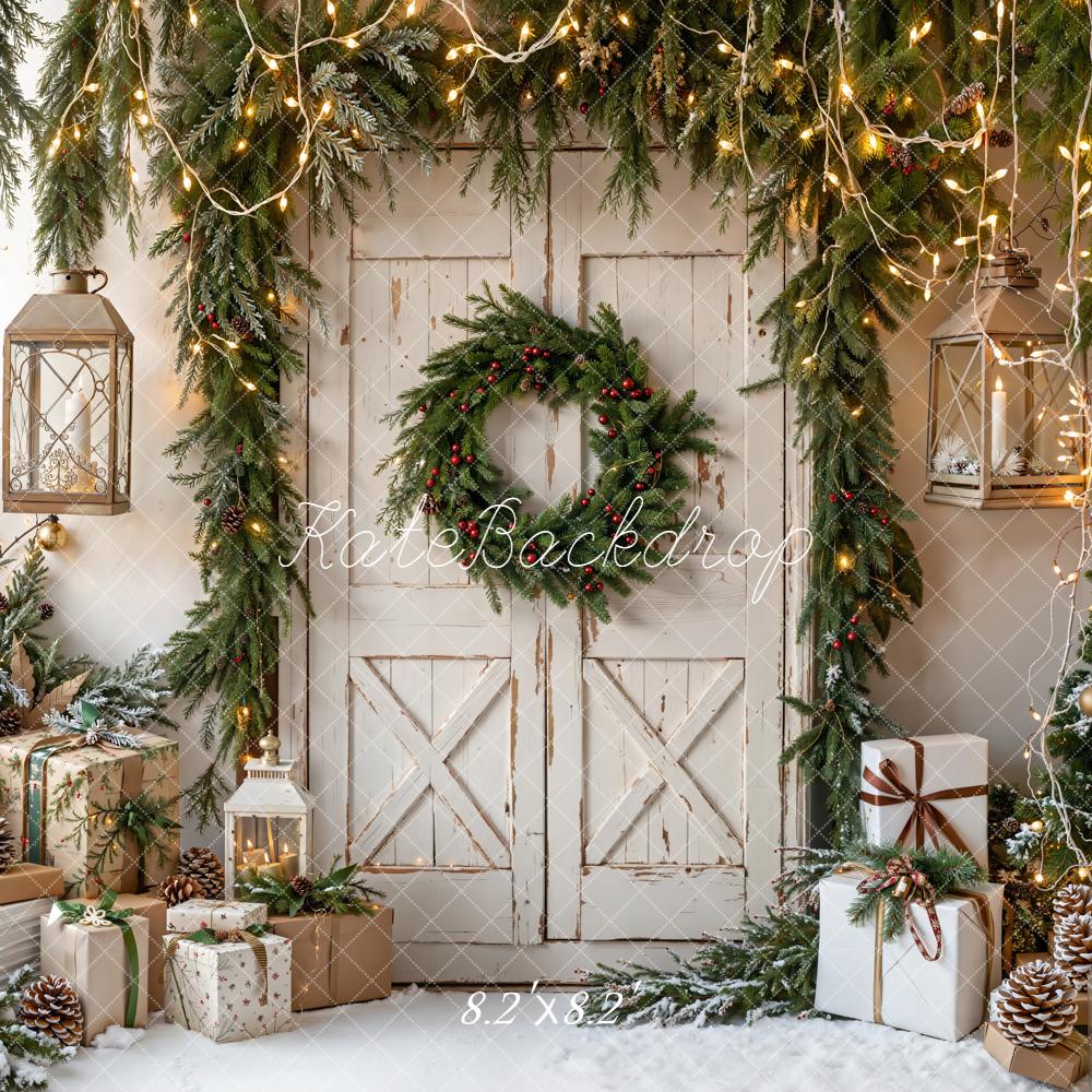 Kate Christmas Rustic Wreath Barn Door Gifts Backdrop Designed by Emetselch