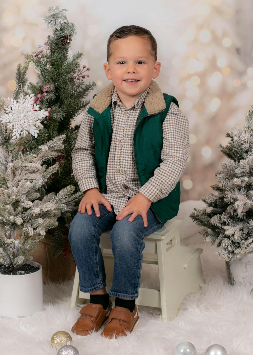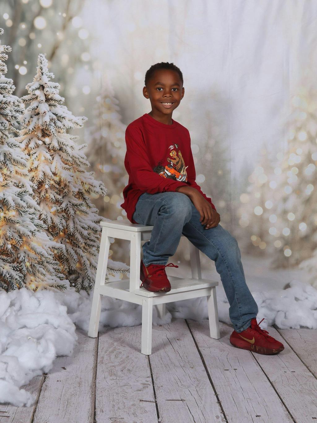 Kate Christmas Winter Snowy Pine Trees Bokeh Lights Backdrop Designed by Emetselch