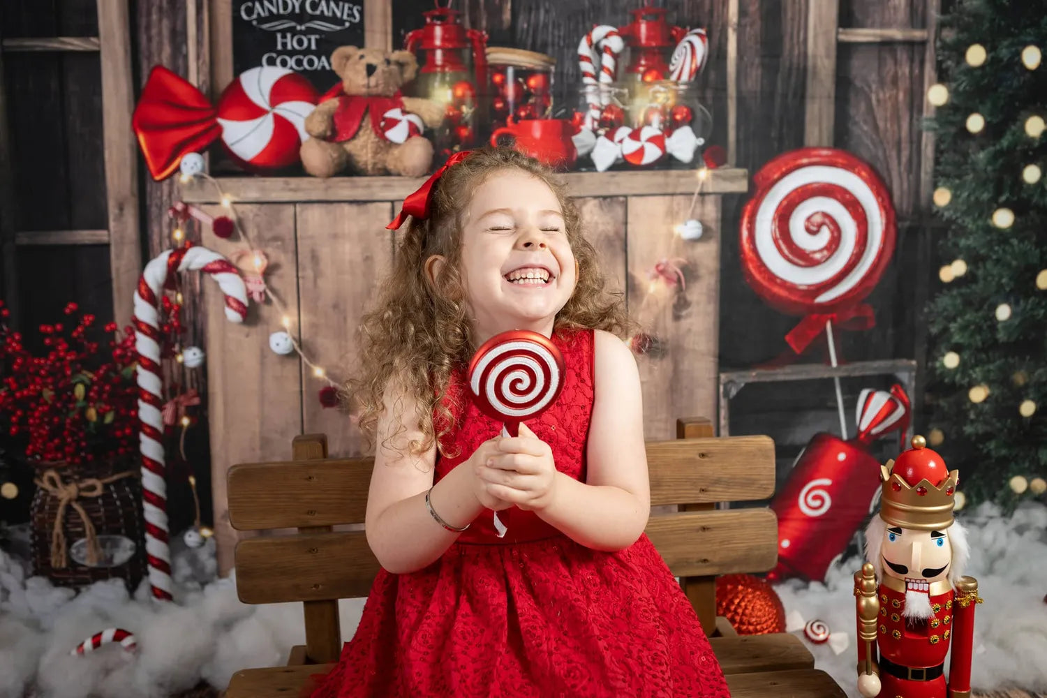 Create a warm and festive atmosphere with the Cozy Rustic Hot Cocoa Holiday Backdrop. Featuring charming wooden textures, glowing Christmas lights, and delightful holiday decorations, this backdrop perfectly enhances seasonal portraits and event photography with a nostalgic, inviting feel.