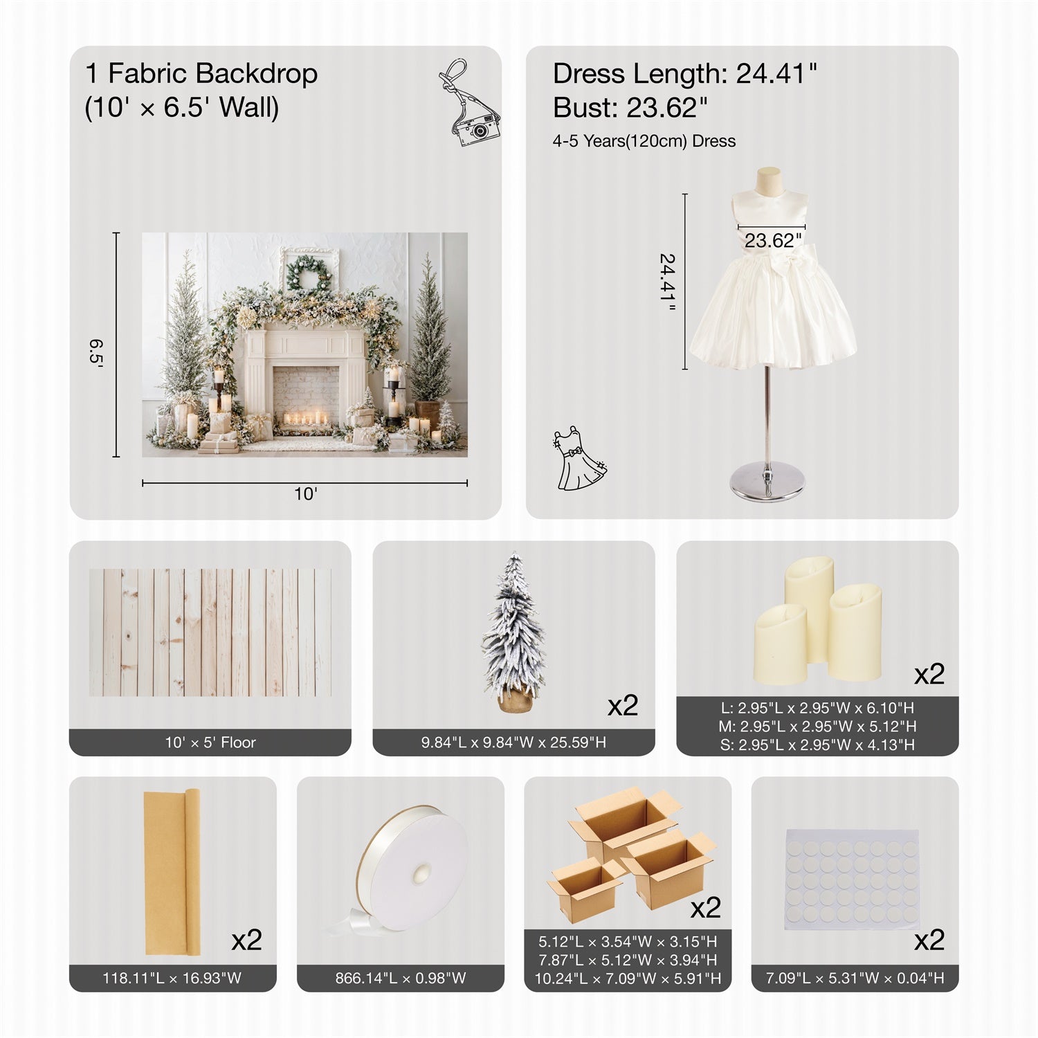 Kate Christmas White Fireplace Photo Kit Photography Backdrops&Props Themed Bundle