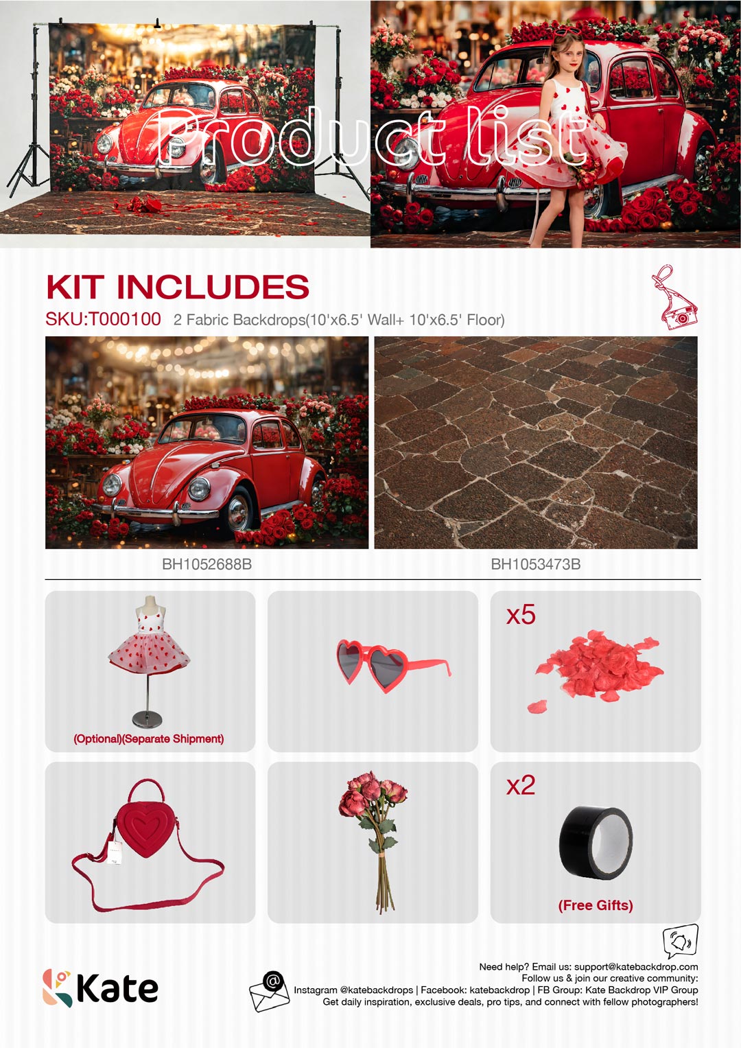 Kate Valentine's Day Red Car Flowers Photo Kit Photography Backdrops&Props Themed Bundle